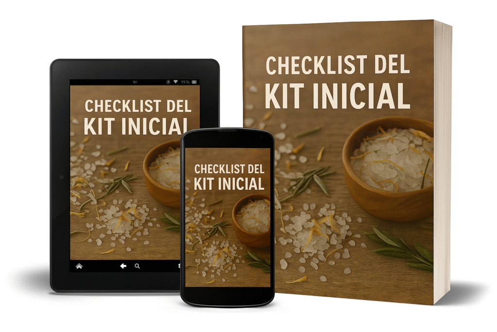Además, recibirás una lista de compras inteligente para preparar tus primeras mezclas de sales de baño sin gastar de más.