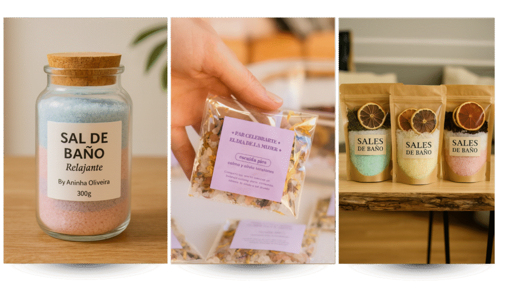 ✅ Mezclas artesanales con sales, flores y aceites esenciales que transforman tu baño — perfectas para regalar o vender con elegancia.