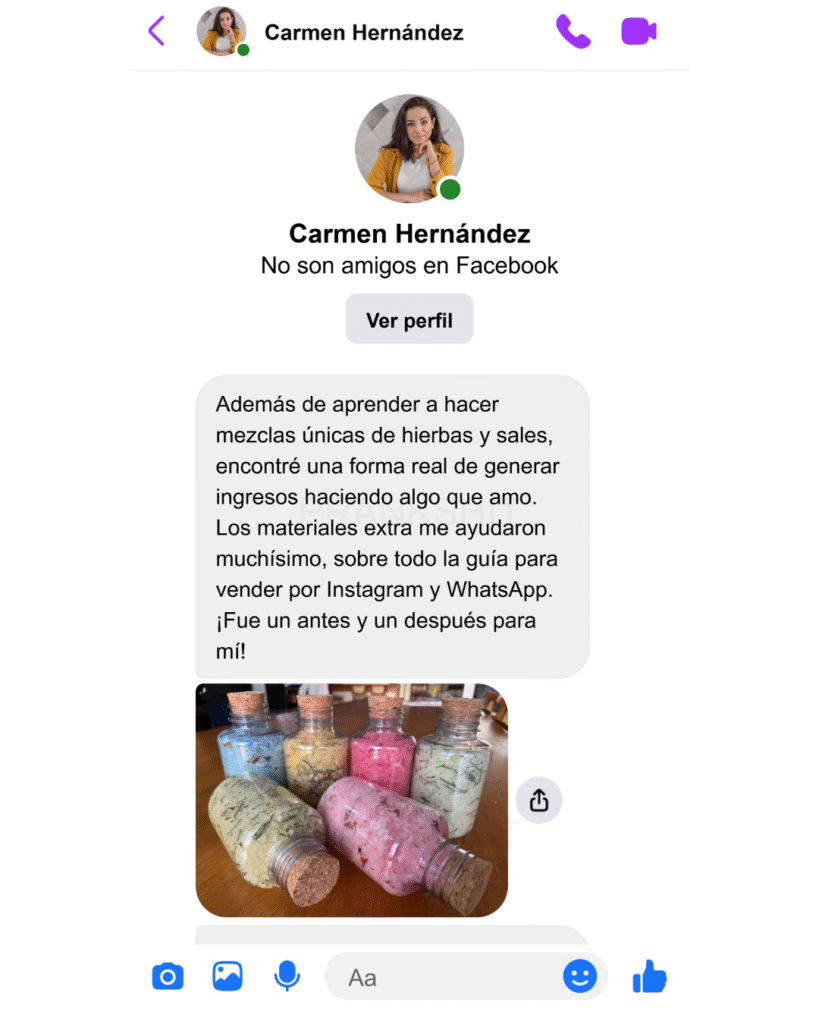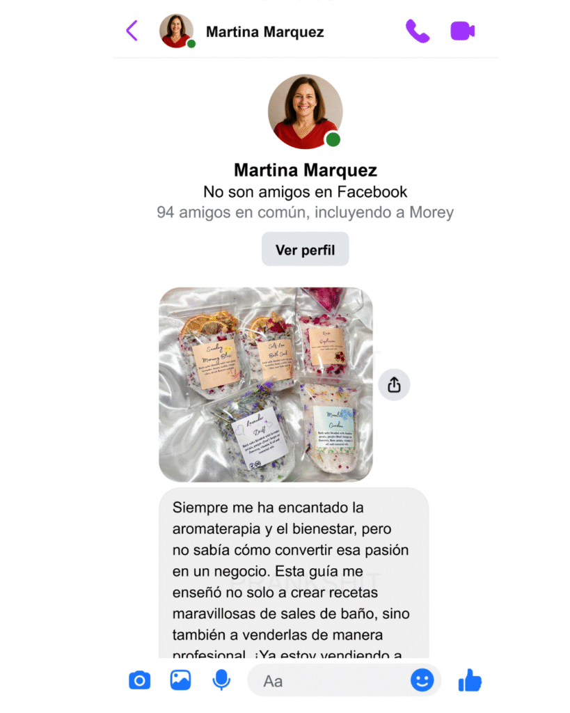 Empecé sin experiencia, usando lo que tenía a mano. Ahora quiero enseñarte lo mismo: cómo convertir tu pasión por las sales de baño y el bienestar en ingresos reales, vendiendo a comisión, a través de una tienda online, a amigos y montando tu propia tienda. Si yo pude empezar desde cero, tú también puedes.